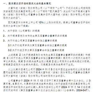 11月15日晚,大富科技发布关于监事会收到股东提议召开临时股东大会的公告称,监事会将按照前述规定和要求在收到函件后10日内,即2024年11月22日召开监事会,审议相关请求。