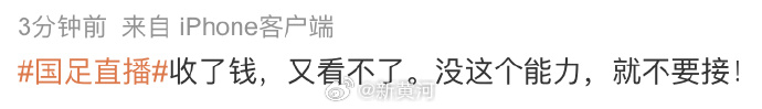 值得一提的是,本场比赛国内唯一一家转播平台为@爱奇艺 @爱奇艺体育 。当天,不少网友在评论区反馈称,爱奇艺无法正常播放国足直播,还有网友表示自己被要求重复付费。