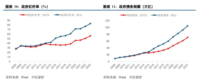 (1)资产端估算:即不论政府预算内债务还是预算外债务,最终都要形成基建资产。因此用已形成的基建资产扣除预算内资金安排和准财政投入规模,剩余部分即视为预算外债务。这种方法测算出来 2023 年末的预算外债务为 75 万亿。