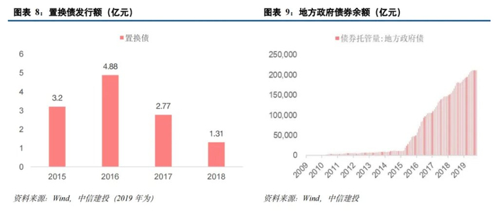 2015-2018 年,地方政府债务置换 12.2 万亿,非债券形式转为债券,不增加债务余额。