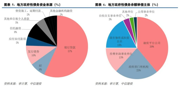 根据以上资金端估算方法,可以测算 2023 年末的预算外债务中,信贷资金占比接近 50%,是预算外债务的主要来源,信托资金占比约 24%,城投债占比约 12%。