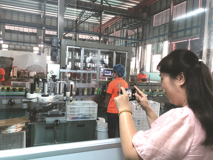 网友参观广西亿嘉农润生物科技有限公司的果汁生产车间。