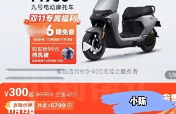 11月9日凌晨,九号电动车通过抖音本地生活平台推出电动摩托车M95c+的秒杀活动,显示商品优惠后的价格为300元,但未明确标示该金额为“定金”,导致部分消费者误认为该价格即为最终购车价格。实际上,这款电动摩托车优惠后的售价为5799元,300元仅为定金。