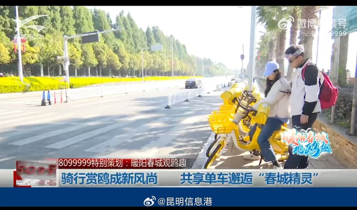 随着冬季的悄然来临,昆明这座“春城”再次迎来了它的老朋友——红嘴鸥。作为远离大海的内陆高原城市,昆明每年冬天都会吸引成千上万的红嘴鸥前来越冬。而近年来,骑行共享电单车观赏海鸥成为了昆明市民和游客的新风尚,让人们在低碳出行中享受到了与自然和谐共处的乐趣。@8099999 #骑行赏鸥成新风尚##暖阳春城观鸥趣#