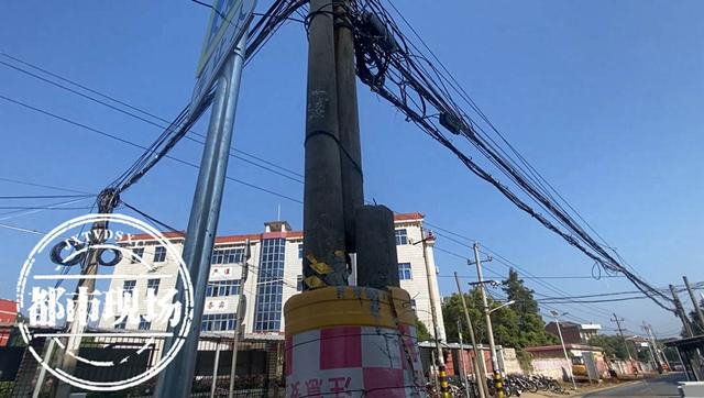 附近村民告诉都市现场记者,这两根线杆就这么“带伤”工作多年,具体属于哪家单位也不清楚。不过,记者注意到,在线杆的顶部有多家运营商的线缆。
