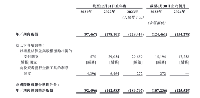 报告期内,该公司经调整净亏损分别为9249.6万元、1.43亿元、1.90亿元及1.26亿元。