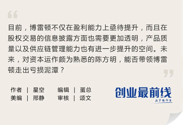 目前,博雷顿不仅在盈利能力上亟待提升,且在股权交易的信息披露方面也需要更加透明,产品质量以及供应链管理能力也有进一步提升的空间。