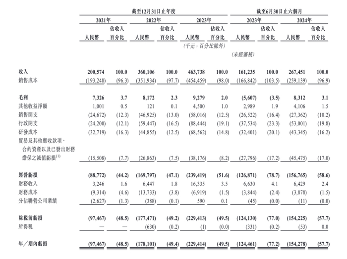 招股书显示,该公司自成立以来一直处于亏损状态,报告期内产生的亏损主要原因是在开发产品、加强研发能力、建立销售渠道方面进行了大量前期投资。