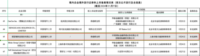 证监会官网在11月7日发布的《境内企业境外发行证券和上市备案情况表》显示,博雷顿的备案状态仍为“补充材料”。
