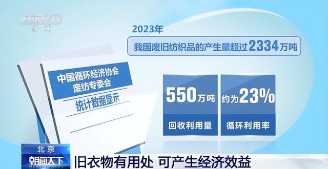 2023年我国废旧纺织品的产生量超过2334万吨,而回收利用量为550万吨,循环利用率约为23%。