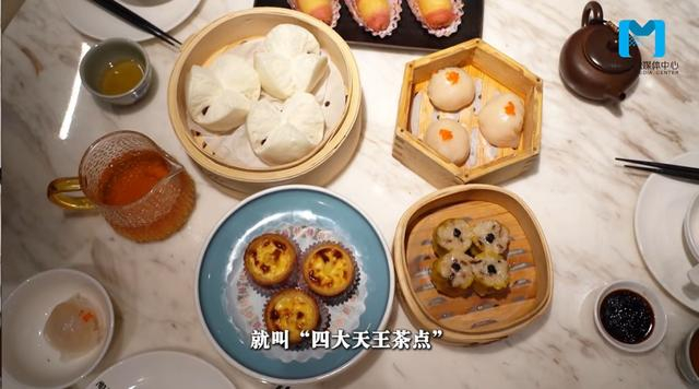 开头讲到的“四大天王”,指的是陶陶居菜单上的“四大天王茶点”,分别是陶陶居大虾饺、黑鱼子香菇烧麦皇、传统鲍汁叉烧包、明炉香滑靓葡挞。来来来,记者帮你们一个一个吃过来~