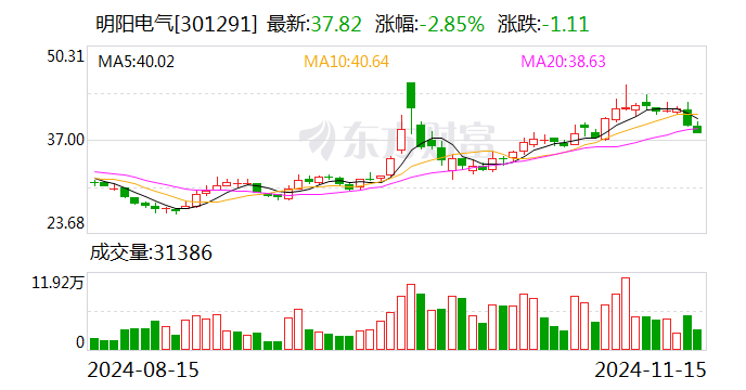 业绩层面看,该公司营业收入、净利润还在持续增长,但增速已有下滑迹象。2024年前三季度,明阳电气的营业收入为40.9亿元,同比增长23.52%,净利润为4.36亿元,同比增长37.56%。而在今年上半年,明阳电气实现营业收入约24.73亿元,同比增加29.94%;归属于上市公司股东的净利润约2.46亿元,同比增加52.36%。
