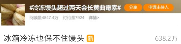 前两天刷到一条乍一看非常耸人听闻的词条——“冷冻馒头超过两天会长黄曲霉素”。