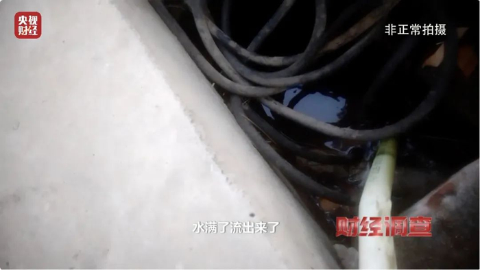 井藏在非常隐蔽的地方,记者好不容易顺着水管找到了井,竟然发现抽出来的地下水已经溢了出来,但工作人员却视若无睹,任由这些地下水白白流失。