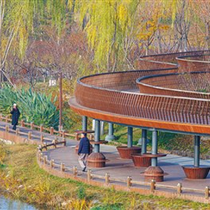 清河之洲公园,就是清河两岸整治提升规划的重要节点之一。改造后的清河之洲公园,将河道的防洪功能与生态、休闲、经济、文化等复合功能相结合,不仅完善了雨洪安全体系,还传承了三山五园的传统文化,构建了以生态为基底、文化为线索的滨水生态系统,成为海淀区第一个完全实现蓝绿融合的滨水绿廊公园。
