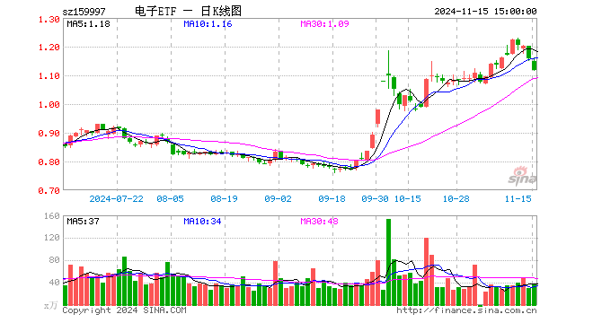 11月15日电子ETF(159997)份额减少900.00万份,最新份额12.66亿份,最新规模14.19亿元