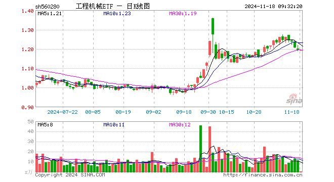 工程机械ETF(560280)业绩比较基准为同期中证工程机械主题指数收益率,管理人为广发基金管理有限公司,基金经理为姚曦,成立(2023-10-18)以来回报为19.36%,近一个月回报为4.27%。