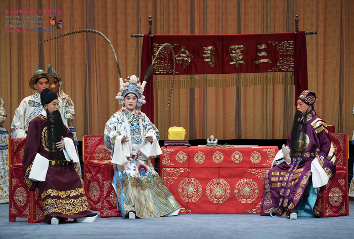 76岁麒派名家陈少云细腻演绎出鲁肃左右为难的仁厚,77岁马派高足朱宝光潇洒诠释了诸葛亮的运筹帷幄,57岁唐派文武老生常东唱做俱佳、文武兼备,精妙展现了关羽义释曹操的情义。三个角色的名唱段接连响起,再现了京剧老生界“南麒北马关外唐”同台的佳话,让本场观众直呼“太过瘾”!