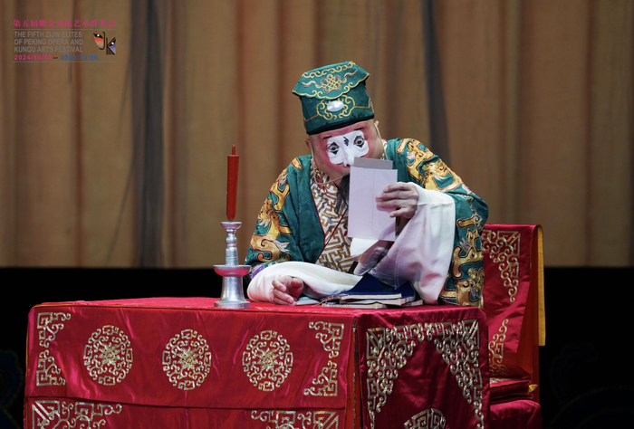 梅花奖名丑朱世慧精湛表现了蒋干弄巧成拙的滑稽,袁世海亲传弟子刘金泉,以其惟妙惟肖的表情神态和身段工架演活了奸诈的曹操,两位77岁的老艺术家,在台上生动鲜活,笑点频出,可谓棋逢对手。71岁裘派花脸名家唐元才虽然发着烧,却依然满宫满调、精神饱满地演出了黄盖舍身为国的忠勇。刘金泉说:“京剧演员在台上就是演人物,我的老师袁世海定义自己是‘人物派’,人物立住了,观众才会给他美誉‘活曹操’。”