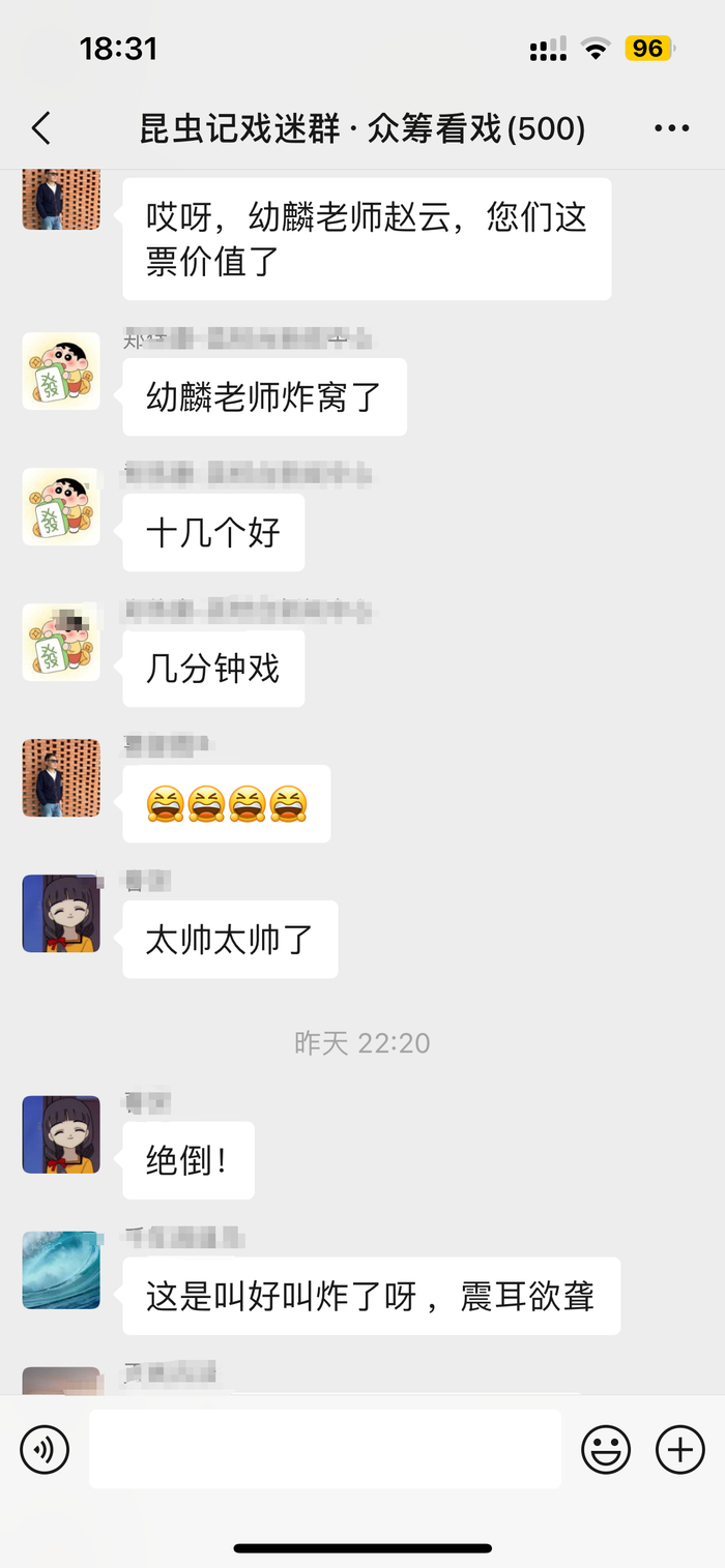 新华日报昆虫记戏曲工作室戏迷群内,观众一边看戏一边点评