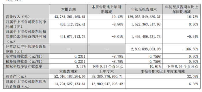 二、公司2024年三季度经营情况:2024年前三季度,公司实现营业收入1290.56亿元同比增长16.73%、利润总额18.41亿元同比增长15.48%、归母净利润15.22亿元同比增长0.30%,每股收益0.7598元同比增加0.30%,ROE10.61%同比下降0.54个百分点。