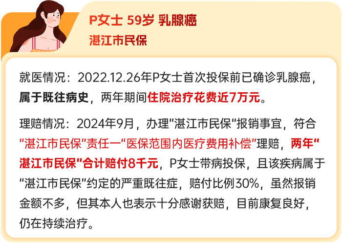 幸好Y女士参保了2023年“湛江市民保”,能够报销3万多的特药费用,不然这12万余元就完全需要Y女士自己承担了。