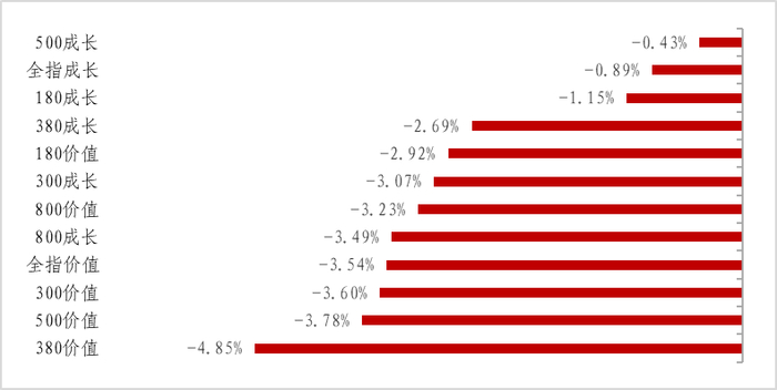 10月主要风格指数中,成长风格表现普遍好于价值风格,500成长、全指成长指数的跌幅最小。