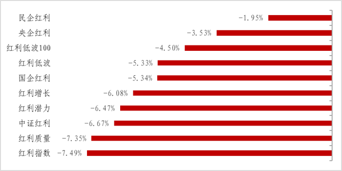 10月主要红利指数中,民企红利、央企红利指数跌幅相对较小。
