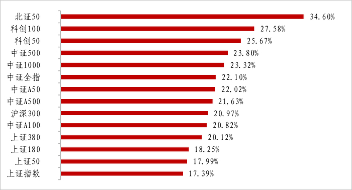 10月A股市场主要规模及综合指数涨跌互现,北证50上涨43.80%。