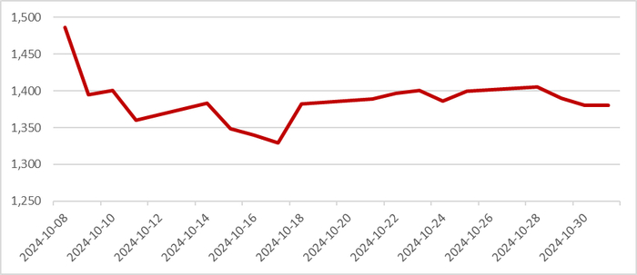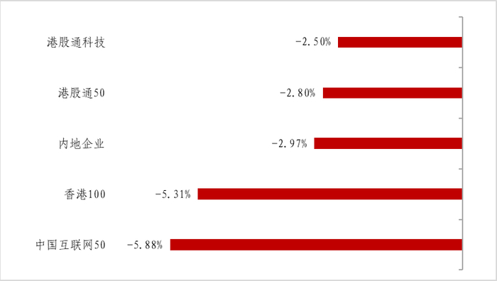 10月香港市场港股通科技、港股通50、内地企业指数的跌幅依次为-2.50%、-2.80%和-2.97%。