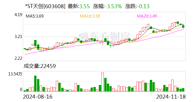 2024年前三季度,*ST天创实现收入8.01亿元,归母净利润-3076万元。
