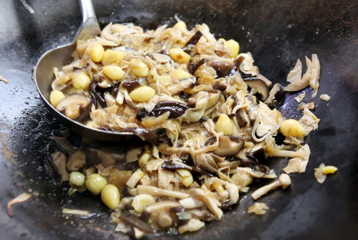 再加上葱、蚝油、花生油等配料,用猛火共煮。