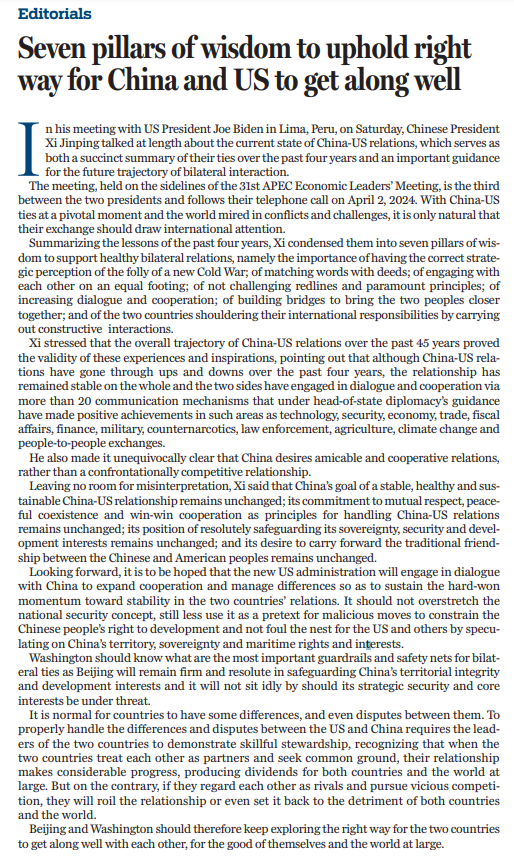 原文标题:Seven pillars of wisdom to uphold right way for China and US to get along well