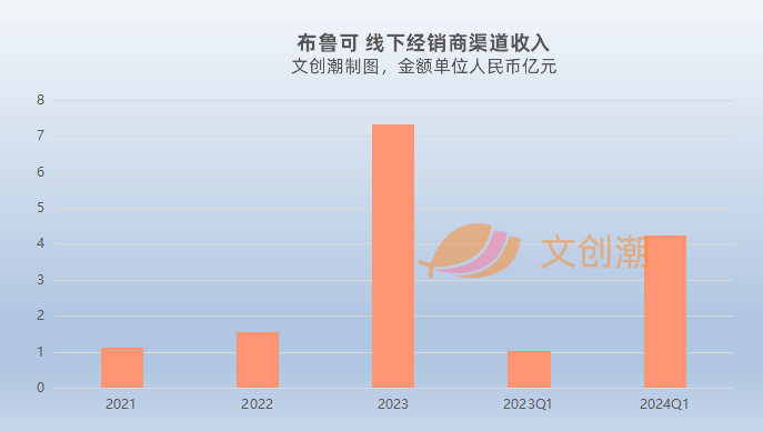 2021年、2022年、2023年、2024年第一季度,布鲁可对线下经销商的销售额分别约1.13亿、1.57亿、7.33亿、4.24亿元。