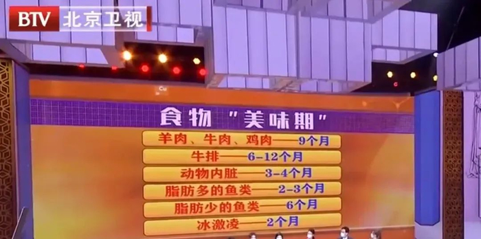 医生推荐的不同食材冷冻时长如下,供大家收藏参考。