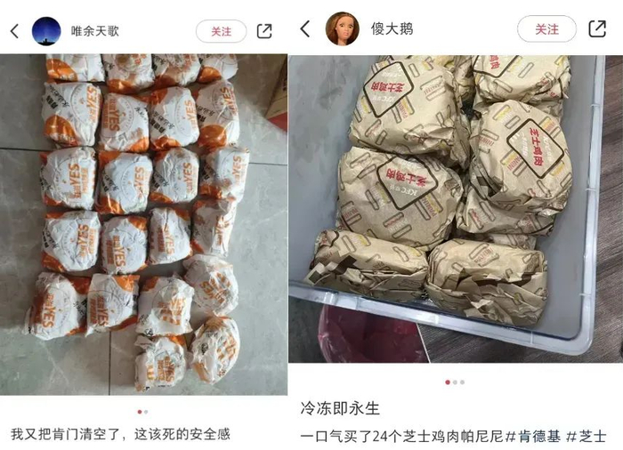 商家促销的面包、汉堡也被纳入“冻门”领域,彻底解决了年轻人觉得套餐吃不完、但又痛苦于便宜不占白不占的矛盾。