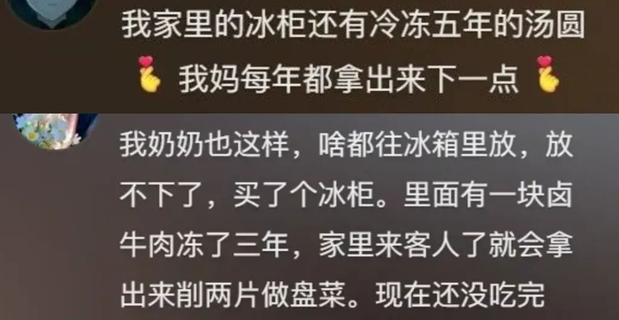 许多网友看到这个词条时都愣住了,脑子里闪现出自个冰箱里半年前的粽子、三个月前冻的馒头等等汇聚一堂的画面。