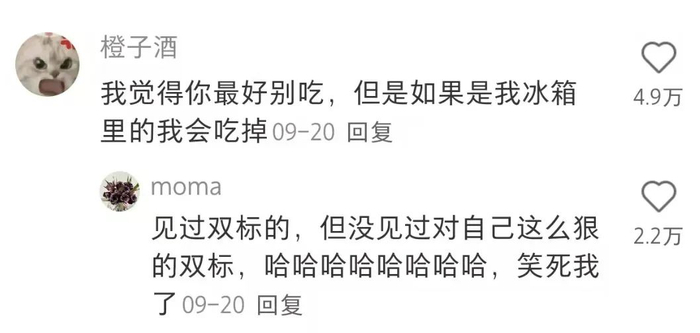 还有人在类似帖子下如此回复:“你最好别吃,但如果是我自己会吃。”