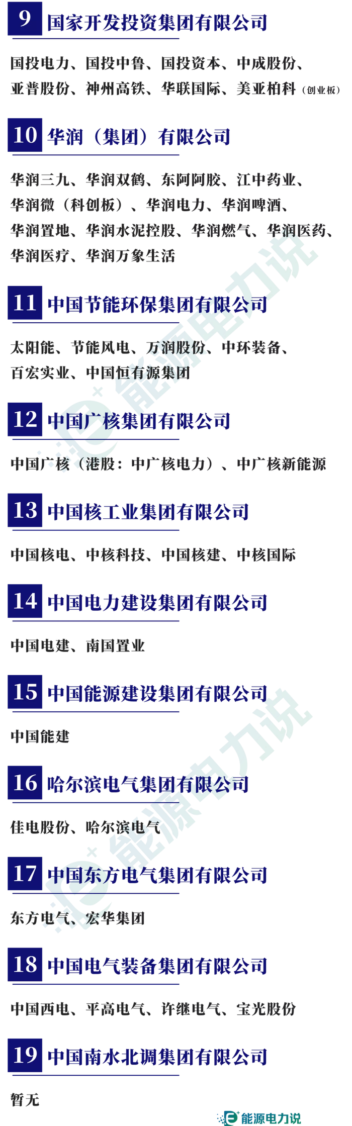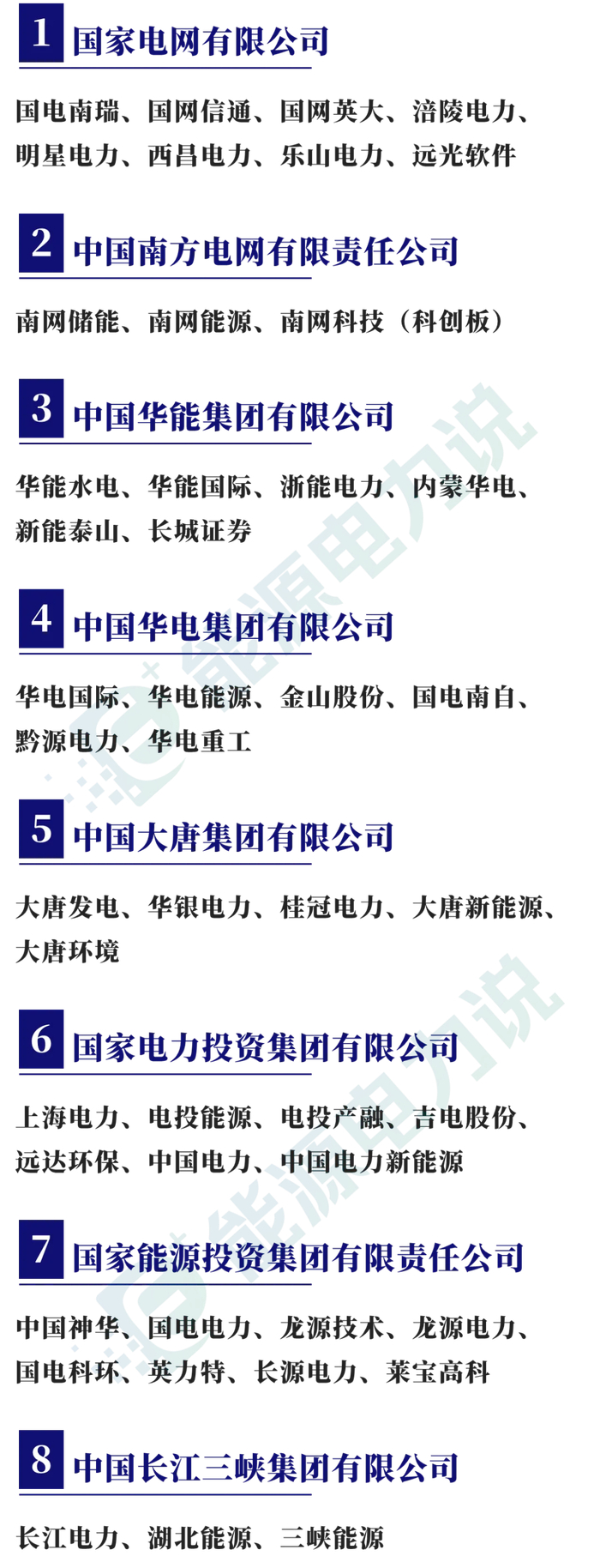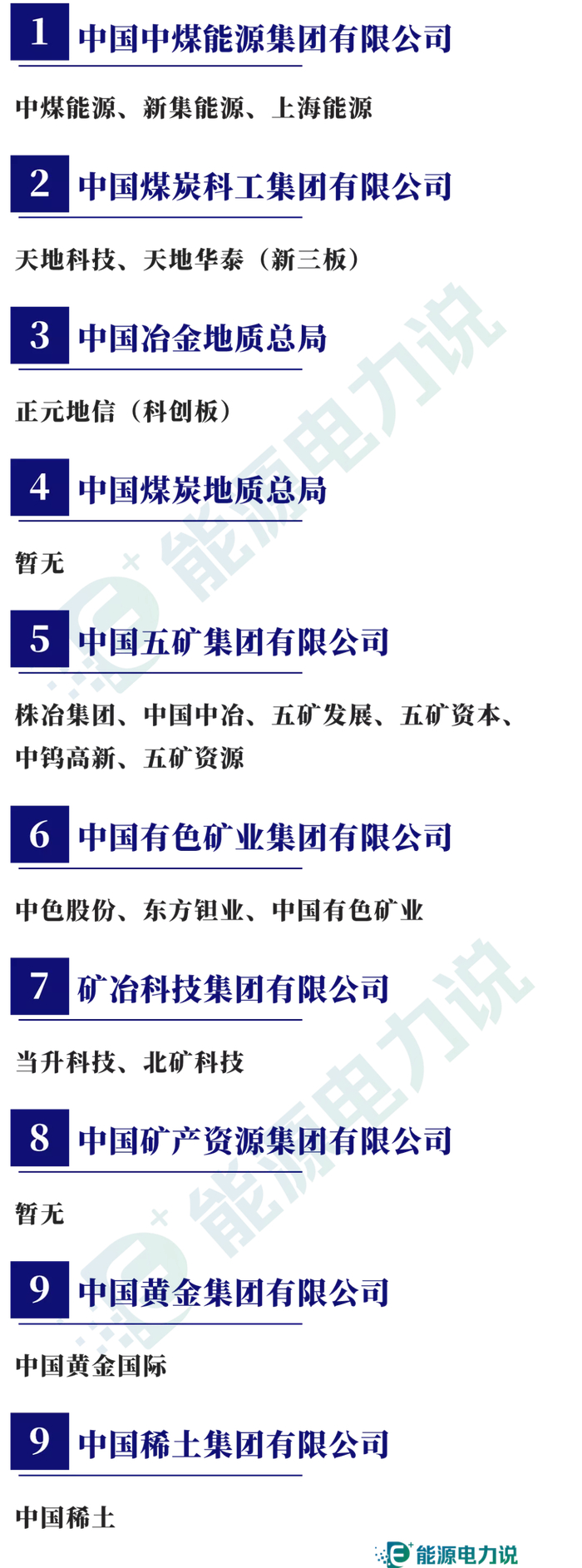 中煤能源、中油工程、中国石化、中国广核、中国神华、中国石油、中国海油