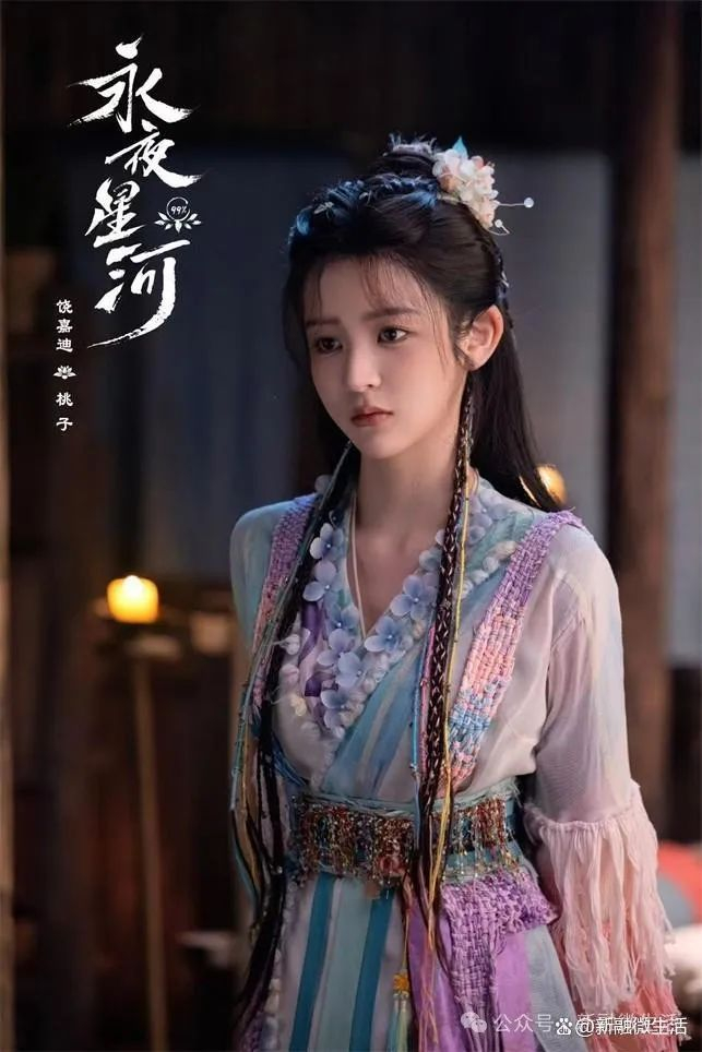 《永夜星河》讲述了普通上班族女孩凌妙妙意外穿越进自己吐槽的小说世界,化身恶毒女配郡守千金林虞,为了回到现实必须完成一系列主线和暗线任务的故事。剧中,饶嘉迪饰演的桃子,是一个来自无忧水寨的单纯善良少女。尽管作为配角,桃子的戏份相较于主角凌妙妙并不算多,但她却以其独特的魅力和饶嘉迪的精湛演技,成为了剧情发展中不可或缺的一环,为整部剧增添了不少色彩和趣味。