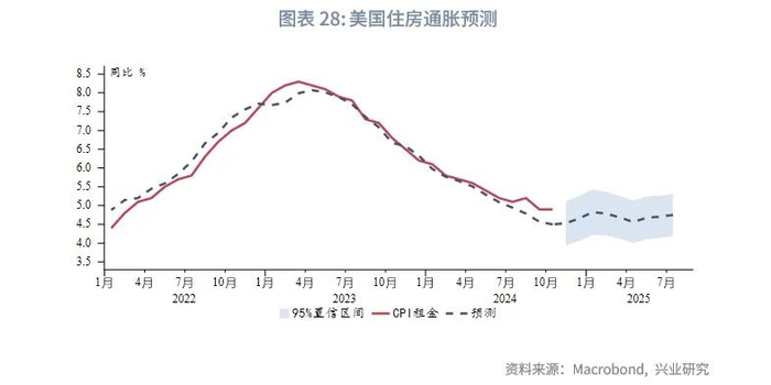 通胀方面,在没有额外政策或供给冲击的情况下,2025年大概率延续温和去通胀进程。首先,核心影响因素住房通胀大概率进入平台期。其次,若原油价格在65~85美元/桶区间内,年内大部分时间对于CPI同比没有显著冲击。明年通胀的主要不确定性来自于特朗普政府的一系列政策可能从多方面抬升通胀,包括:(1)财政赤字扩张会抬升非周期通胀因素;(2)驱逐非法移民减少低成本劳动力供给,可能引发薪资上涨,推升服务业通胀;(3)大幅加征关税增加进口成本,短期显著抬升CPI同比(美元升值或部分对冲);(4)减税调高中长期GDP增速,进而抬升中长期CPI中枢,加大通胀重回2%难度。而通胀的变动主要通过影响美联储降息预期来影响金价。