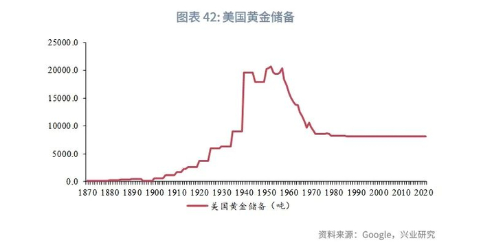 分发达经济体和新兴经济体来看,布雷顿森林体系解体后直到20世纪80年代末,全球黄金储备总量维持平稳。进入20世纪90年代,随着宏观经济波动减小,许多欧洲经济体政府认为中央银行持有黄金储备的机会成本过高,开始抛售部分黄金储备,1990—1997年出售了约1918吨,占到发达经济体中央银行黄金储备量的7.5%。这些销售使得黄金价格开始迅速下降。1999年5月,英国政府宣布将于1999年第二季度至2002年第一季度卖出一半的黄金储备,致使金价降至20年来的低点,约为每盎司250美元。鉴于这次中央银行清算对黄金价格产生的负面影响,15家欧洲经济体中央银行于1999年9月26日在华盛顿签署了中央银行黄金协议,开始限制中央银行的年销售额。从产业技术周期的角度来看,这一时期是生产力快速回升的期望膨胀期,这是压制金价更重要的因素,而售金则是伴随的现象之一。