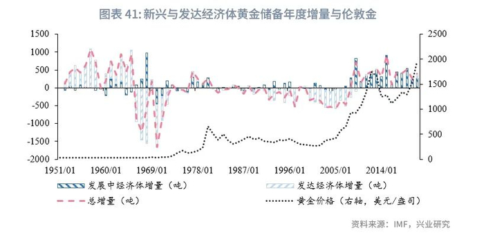 全球中央银行是黄金市场的重要参与者,其黄金储备的变化存在战略性和战术性两个特征,对于不同周期的金价走势也具有参考意义。从战略性而言,全球中央银行黄金储备的变化往往与宏观大背景变化以及金价大拐点来临有关;从战术性而言,全球中央银行黄金储备的变化则呈现一定的高抛低吸特征。