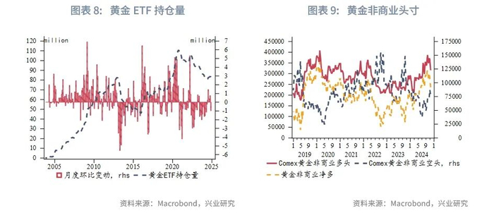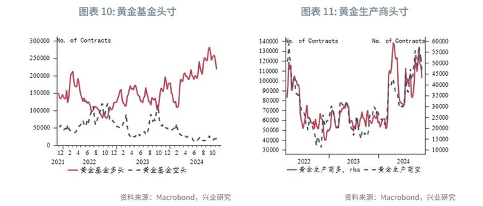 最后,特朗普的多项政策都可能使得美国通胀再度反弹。例如,特朗普收紧移民管理的政策,一方面将增加财政支出,另一方面将减少美国市场中的可用劳动力,可能会导致美国经济产出下降、通货膨胀上升[3]。其他财政扩张政策在理论上也不利于控制通胀。对美国财政可持续性的担忧以及通货膨胀中枢的升高将在长期利好金价。