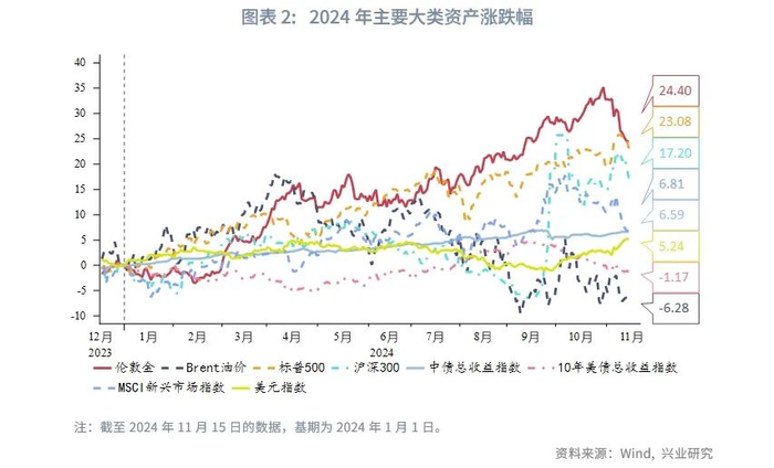 一、2024年市场回顾:黄金跑赢多数大类资产