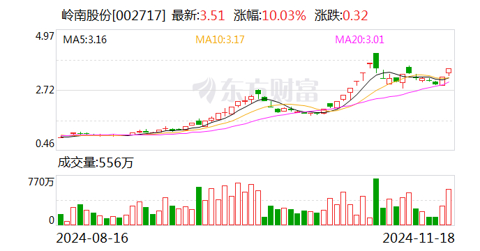 2024年前三季度,岭南股份实现收入8.05亿元,归母净利润-2.72亿元。