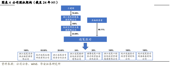 公司第一大股东为杭州宝群实业集团有限公司,股权占比33.89%,公司实际控制人为吕建明,吕先生亦为公司创始人。公司管理团队同时具备高水平管理素质和深厚医学底蕴。董事长、总经理王毅历任通策房地产公司财务总监及通策医疗公司财务总监,对公司运营和财务状况有着丰富经验。而公司总院院长均为全国口腔医学学科领军人物,主任医师王维倩,从事口腔医学32年,现任杭州口腔医院平海区域总院长;陈丹鹏博士为杭州口腔医院总院长和昆明口腔医院院长,曾任上海交通大学硕士生导师,现任浙江省口腔医学会口腔医院管理专业委员会副主任委员;富明先生为西安存济医学中心院长、通策集团省外存济医院集团院长,毕业于第四军医大学,曾任第四军医大学口腔医院医教部副主任、第四军医大学出版社社长,任全军医学编辑委员会副主任委员。公司学术底蕴深厚的管理层团队和具备强号召力的各总院院长将为公司长期发展保驾护航。