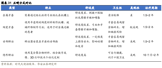 牙医数仍显著不足,正畸人才短缺严重。2023年每百万人口牙医数量排名中,中国在该指标上显著低于发达国家和部分发展中国家,仅195人/每百万人口,是美国的26%及日本的32.23%。牙医供给仍处于低位。正畸人才短缺严重。相较于美国,中国牙医更倾向于成为全科牙医,而非专业的正畸医生,2021年中国每十万人中只有0.5名正畸医生,而美国有3.2名。在相同人口基数的情况下,美国正畸医生数量约是中国的7倍。