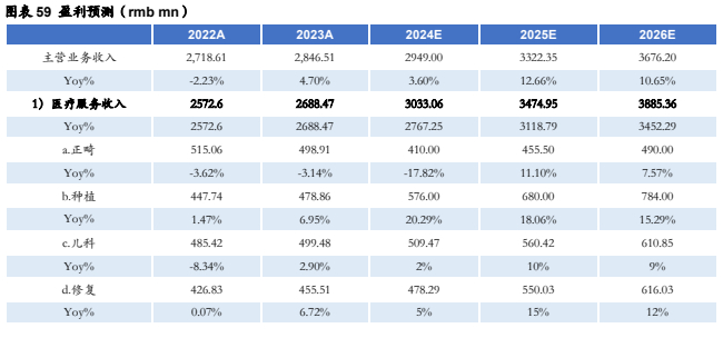 随着公司医院运营模式的不断成熟、蒲公英计划的逐步推进和区域加密、及需求端的上升,公司口腔医疗服务领域有望重回量价齐升趋势。2023年公司牙椅数量3000张,相较2022年增加300张;2023年公司口腔医疗服务门诊量达335.33万人次,同比增长13.83%;24H1公司门诊量171万人次。
