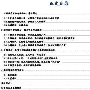口腔医疗服务发展空间广阔,变化的环境给经营管理能力优秀、规模效应突出的企业以发展的春风。我国医疗保健支出的持续增加,叠加老龄化的趋势,口腔医疗服务需求持续扩大,行业规模天花板高。种植牙政策倒逼企业提质增效,具备优秀经营管理能力的企业有望突出重围,积极适应变化的环境,寻求发展新路径。未来随着经济的逐步企稳向好,消费类口腔医疗服务项目有望持续扩张,口腔医疗服务行业依旧具备较大的发展空间。